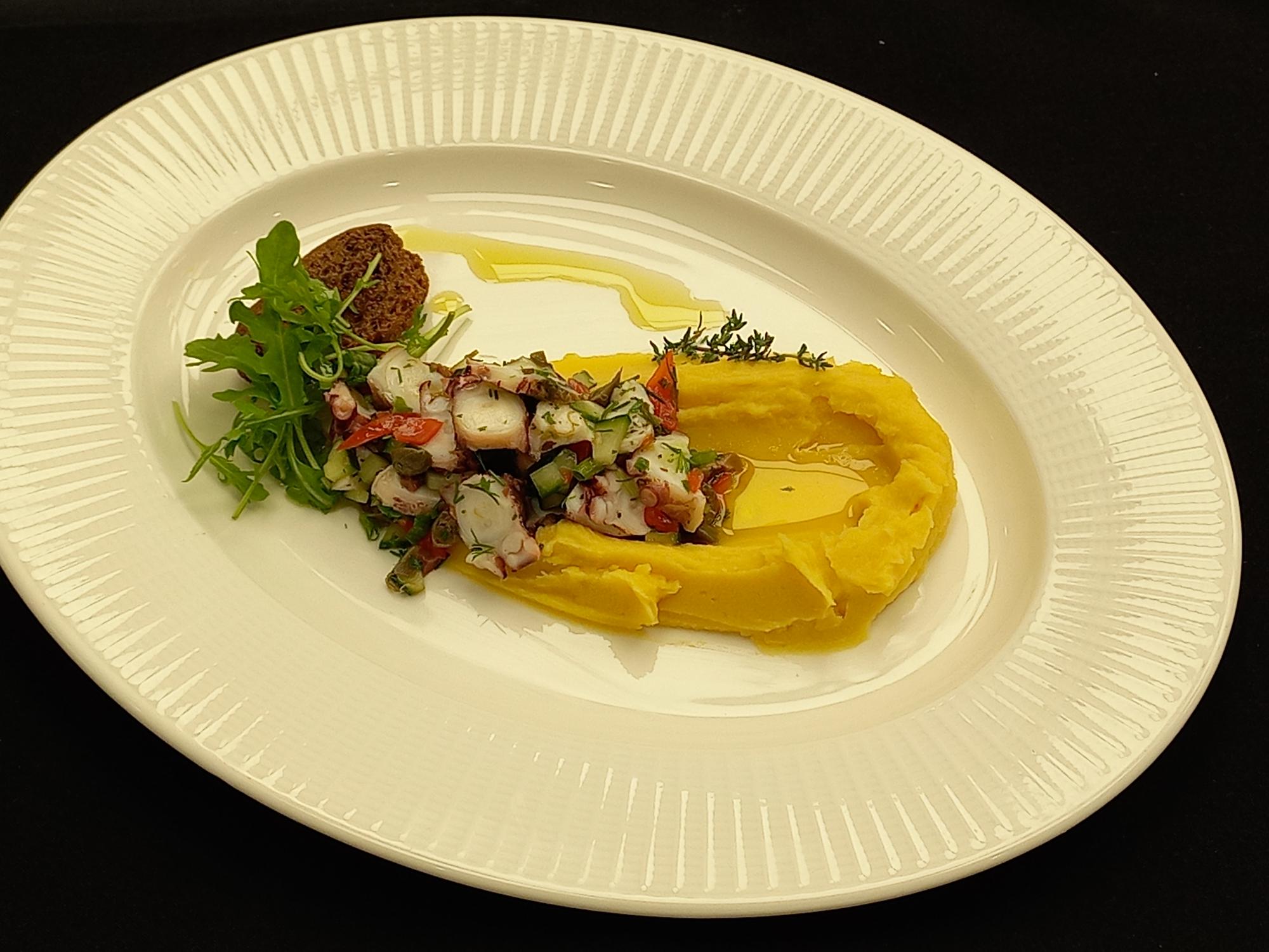 - Αιγαιοπελαγίτικο ορεκτικό: Δροσερή σαλάτα χταποδιού με φάβα και παξιμάδια ντομάτας
