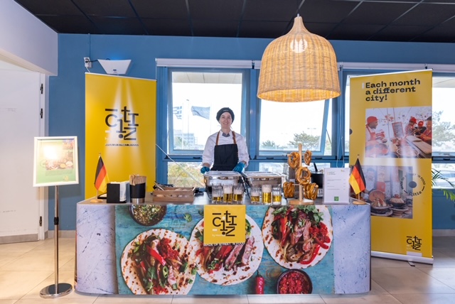 Το μενού της θεματικής ημέρας περιλάμβανε show cooking με λαχταριστές συνταγές που γευόμαστε στους δρόμους της πόλης κατά τη διάρκεια του φεστιβάλ κάθε Οκτώβριο, όπως Currywurst, δηλαδή γερμανικά λουκάνικα με πικάντικη σάλτσα και κάρυ και Kartoffelpuffer, τραγανές πατατοκροκέτες με τριμμένο κρεμμυδάκι και καρυκεύματα. Από τις προτάσεις της ημέρας δεν θα μπορούσαν βέβαια να λείψουν τα ζεστά Pretzels και οι δροσερές άνευ αλκοόλ μπύρες που συμπλήρωσαν τη γευστική απόλαυση. Το γεύμα έκλεινε με γλυκούς πειρασμούς από μπερλίνες με πραλίνα και φράουλα.